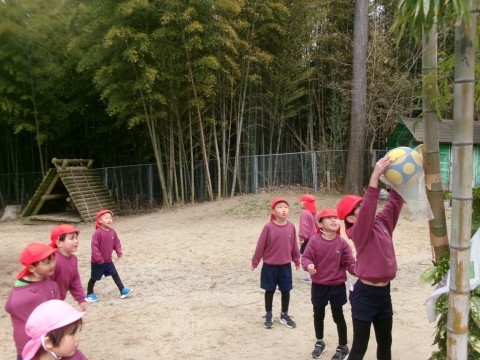 朝から森でたくさん遊びました!最近はサッカーやオリジナルバスケットなどボールを使った遊びで楽しんでいます☆