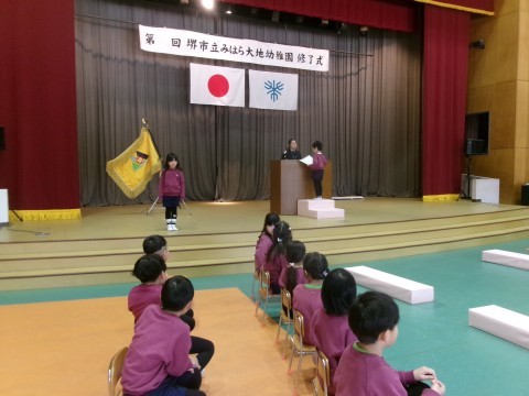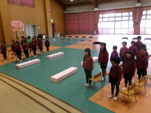 今日は初めてホールで修了式の練習をしてみました。友達の姿をしっかり見たり大きな声で返事をしたりと自分なりに「ここはがんばろう!」と意識して取り組むことができました!