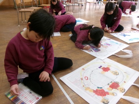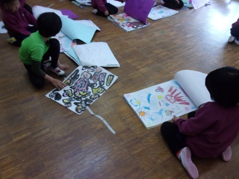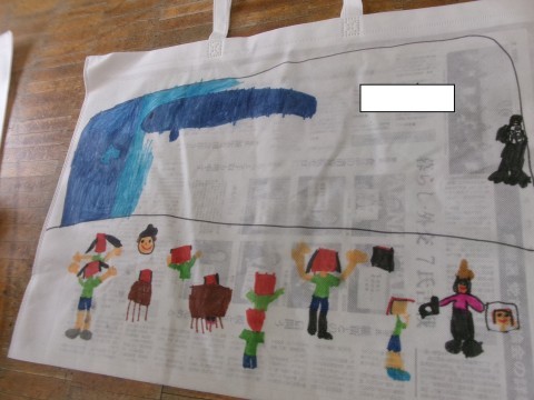 作品袋も完成してきましたよ♪さすが年長さん!しっかり丁寧に色を塗っていました☆持ち帰りが楽しみですね!