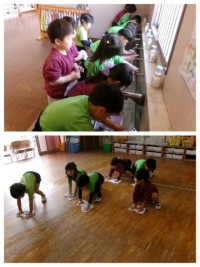 部屋で楽しんでいる『なべなべそこぬけ』や『貨物列車』をしたり