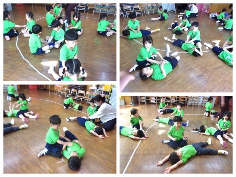 クラスでは,友達と一緒にふれあい遊びをしました。