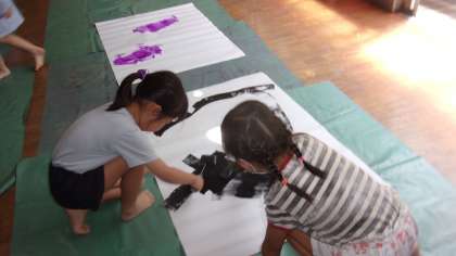 今日は夜空をイメージして、ローラーで白い紙に色をつけましたよ♪