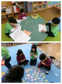 片付けの時間になり「もう少し遊びたい」という声があがりました。そこで片付け方を考えて、今遊んでいないものだけを片付けて、遊びの続きが出来るようにしました。結果、遊びが継続できるので子どもたちも大喜びです。