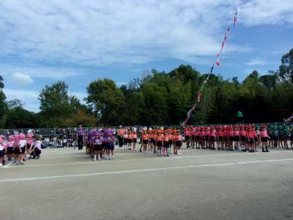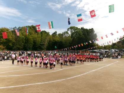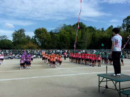 1.開会式 公開日 2023/10/07 更新日 2023/10/07 園行事 さぁ,いよいよ運動会の始まりです! 年長さんは,競技や演技だけでなく様々な役割もこなしてくれました。 子どもたちが着ているTシャツは,9月の参観日に親子で染めたものです。 それぞれのクラスカラーが,鮮やかですね。