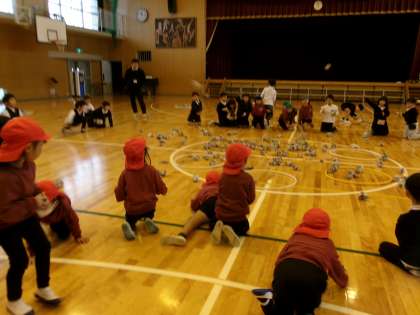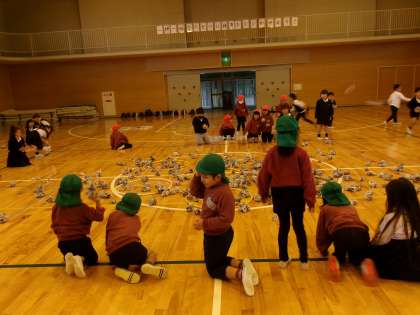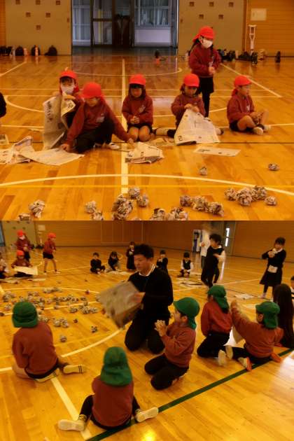 幼小交流(平尾小学校) 2 公開日 2023/11/13 更新日 2023/11/13 年長児の様子 1年生と一緒に、新聞紙でボールをたくさん作って「玉入れゲーム」をしました。 みんなルールを守って、楽しく体を動かしましたよ。 盛り上がって遊ぶ中でも、「1年生がボールどうぞって渡してくれたよ。」とかかわりを喜ぶ姿がありました。 「また遊びたいな♪」と、小学校に行くのがますます楽しみになったようです。