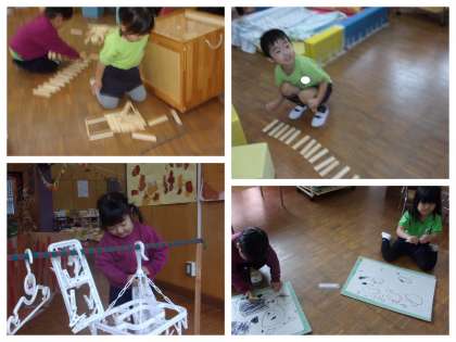 カプラ遊びも楽しみました。線路を作ったり、お家を作ったりと形にするのが楽しい様子です。