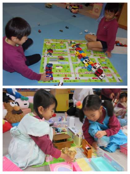 今日はとても寒く、雨も降っていたので保育室での遊びになりました。