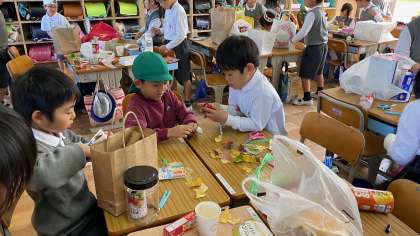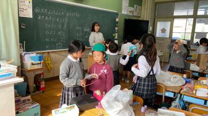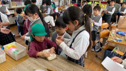 さつき野小学校では、1年生生活科の「秋のおもちゃづくり」に参加させていただきました。