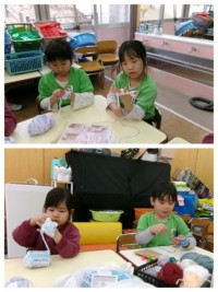 今日は入園前健康診断で午前保育でした。降園後、お弁当の前にたっぷり遊び、「お片付けしてお弁当食べよう」の声掛けにも、「もう少し遊びたい」と遊ぶ意欲満々の子どもたちの声がたくさん聞かれました。お弁当もしっかり食べて「さあ、遊ぶぞ!」と早速遊びの場に向かい、今日も保育室でも戸外でも、いろいろな遊びが繰り広げられていました。