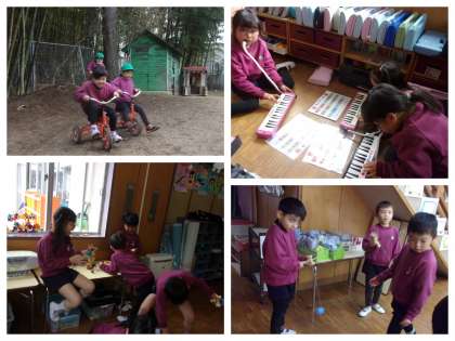 今日は戸外でゆっくり遊びました!久しぶりに木登りに挑戦してみたり、ひなたで友達との会話を楽しんだりしました。また、部屋では鍵盤ハーモニカを持ち出しCDの伴奏に合わせて友達と一緒に音を奏でたり、LaQで剣や車を作ったり、けん玉のやり方を教えてあげるなど、『仲間』を感じながら過ごす様子がたくさん見られるようになりました。