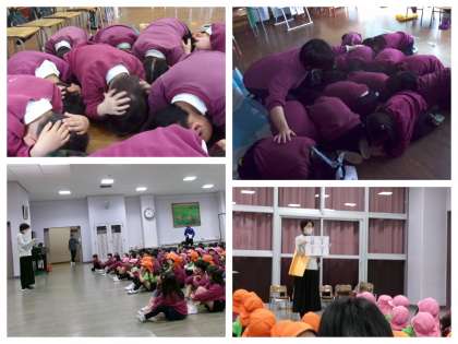 今日は避難訓練をしました。最初に地震が起きて、そこから火災が起きたと想定して、避難訓練をしました。