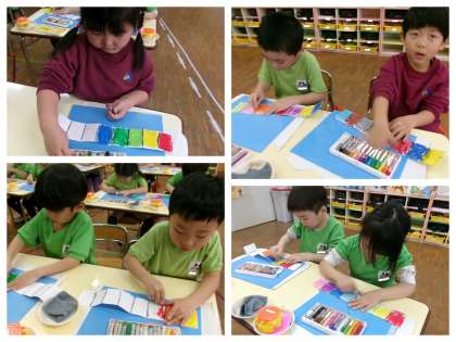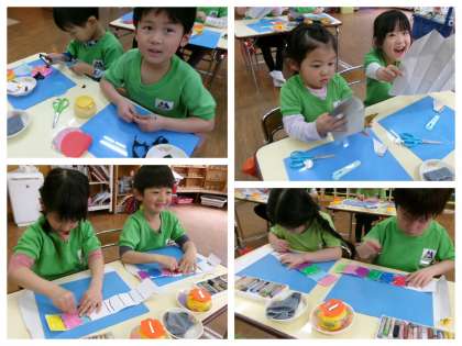 今日は、ひな祭りに向けて、お雛様の話をしました。なぜ、桃の節句にお雛様を飾るのかを絵本で読んだり、制作をしたりしました。制作で、今日は、お雛様とお内裏様が持つ笏や桧扇、金屏風、飾り台を作りました。細かなものを上手にはさみを動かして切れるようになりました☺また、台は、好きな色のクレパスでしっかりと塗り込みました。白いところがないように、手指をしっかり動かして塗っていました♪続きは、また後日(^^)/
