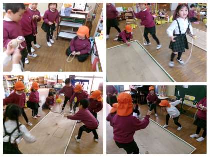 降園前は、こままわしをして遊びました。はじめは難しかった紐まきも上手になってきました。繰り返し行う中で、難しかったこともできるようになってきました☺うまく回るとみんな集まって何秒回るか数えていました(^^♪30秒回ると“こま名人”みたいです♪