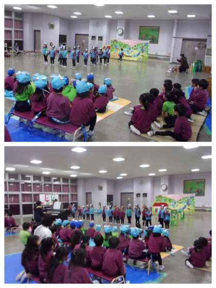 今日は年長さん年中さんが「おおかみさんいまなんじ?」の劇を見に来てくれました!たくさんのお客さんにドキドキしながらも嬉しそうにごっこ遊びを楽しむ子どもたち!みんなにみてもらって「大きな声でしゃべっていた!」とほめてもらって嬉しかったね!異年齢の子どもたちに認めてもらうことで自信につながった子どもたちです☆