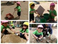 お外でたくさん遊んだ後は、お茶タイムです♪「おいしいね」と言いながらゴクゴク飲んでいました。シールノートにシールも自分でペタッ!上手に貼れました。「どうぶつ体操」はいろんな動物さんに元気いっぱい変身しました。絵本大好ききりん組さん。絵本を見ながらお話をたくさんしてくれます。明日はどんな絵本にしようかな?