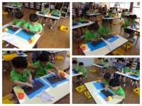 今日も身支度を終えた子から、戸外でたっぷり遊びましたよ♪先週から、ダンゴムシ探しに夢中の子どもたち!どこにダンゴムシがいるのか!?畑のシートをめくったり、枯葉の下を探したり。ダンゴムシを見つけると、虫眼鏡を急いで持ってきて足の数を確かめていました☺年長さんが、ダンゴムシの家を作っているのをみると、わたしも!と、虫かごを持ってきて年長さんの後を追いかけて一緒になって作っていましたよ。年長さんの遊ぶ姿に、“たのしそう!”“やってみよう!”を見つけて遊んでいます♪また、ダンゴムシが少し怖い年少さんがいると、