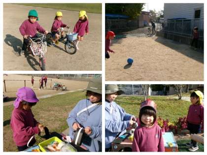 お外遊びでは自転車や三輪車・サッカーはもちろん落ち葉を拾ってきて冠を作ったり👑、ドングリころがしのゴールを金のボールにしていつもと違う音色を楽しんだり🎶しましたよ(*^▽^*)