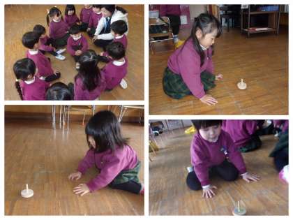昨日遊んだ「かごめかごめがしたい!」ということで今日もやってみました。わらべ歌のゆったりとしたリズムにのって心地よさを感じる子どもたち。後ろにいる友達は誰かな?動物の鳴き声をして当てます。友達の声をよく分かっていますよ!すごいですね☆これからも友達を感じられる遊びをたくさん取り入れていければと考えています。