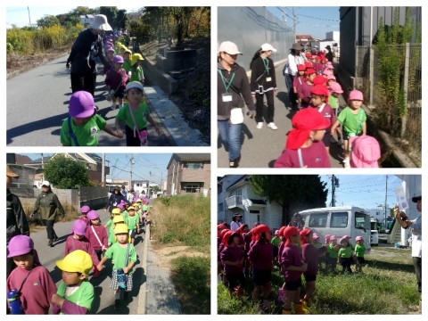 異年齢で手をつないで出発です(^^)/╲(^^)