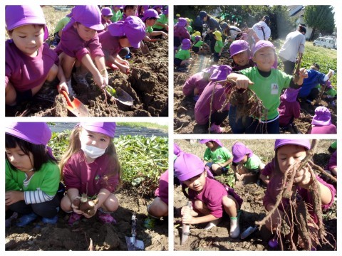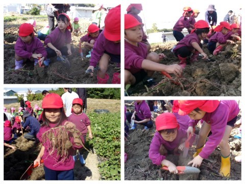 お芋が見えると目を輝かせ必死に掘る子どもたちです!