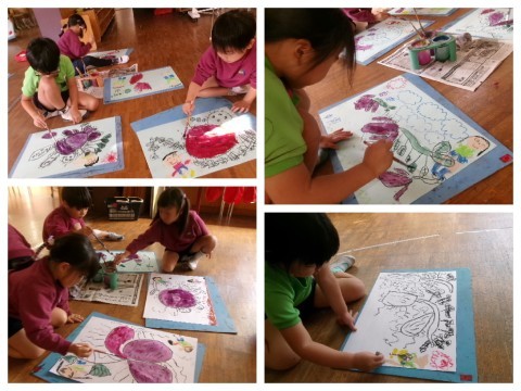 園に戻ってきてから、楽しかった芋ほりの絵を描くクラスもありました。