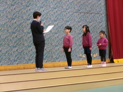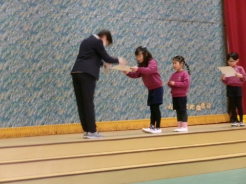 たくさんの保護者の皆さんの前で表彰してもらい、とっても嬉しそうな子どもたちでした。