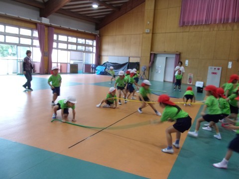 ホールでは、これまでクラスで楽しんできた短縄ひきを楽しみました。