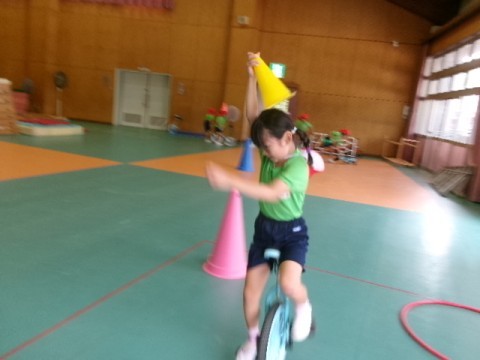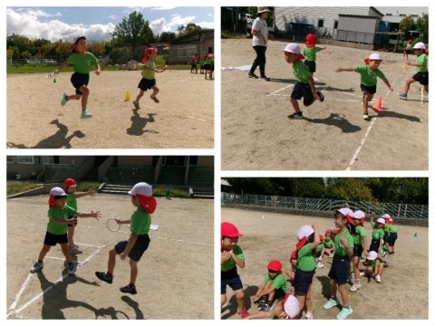 運動場やホールでは自分で決めた運動遊びに、繰り返し挑戦する姿が見られました。