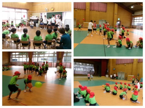 風船運びでは,ばら組の子どもたちの意見も取り入れながら,ゲームが盛り上がるように工夫していましたよ。