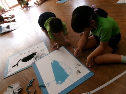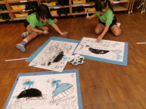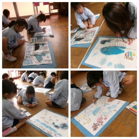 自分なりにイメージを広げどんどん描き進めていく姿があり,子どもたちの絵からも楽しさが伝わってきました☆
