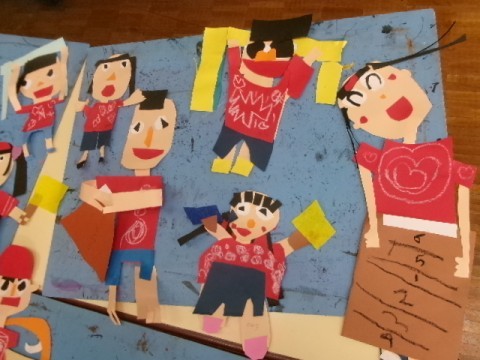 ゲームが終わった子どもたちにも,塗り絵と折り紙のお楽しみを用意してくれていました。