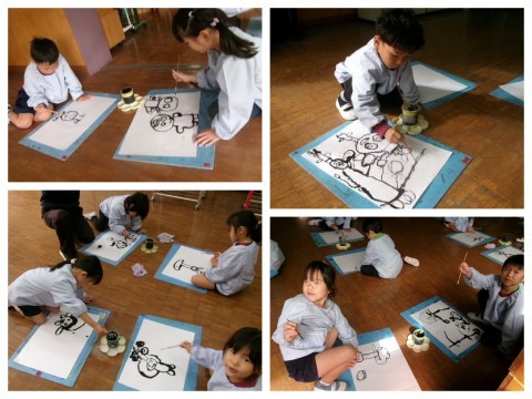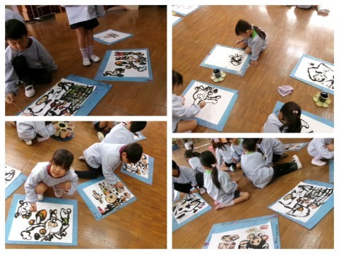 絵の具で描いた場所を踏まないように,よく周りをみて描いていました(^▽^)/
