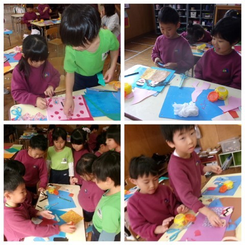2日間の小学校幼小交流会の間、幼稚園では参加しない子どもたちが制作を楽しみました。