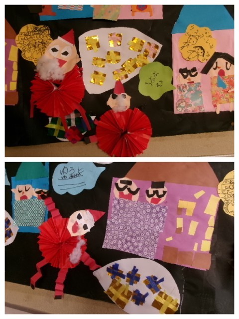 サンタクロースやすやすや寝ている自分たちを制作しています。