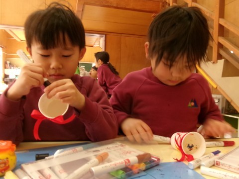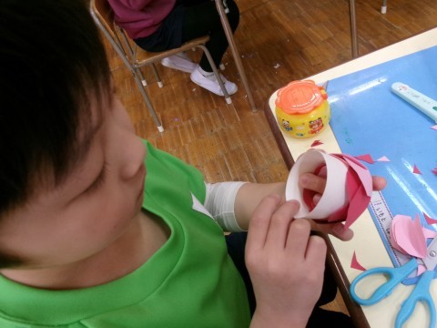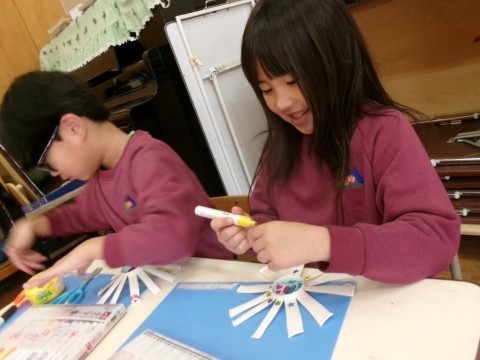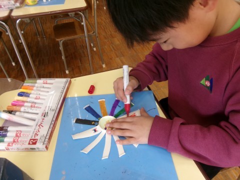 「もらったらぜったいうれしいよな!」と友達とお話しながら作ったり,一生懸命かんがえてメッセージカードを書いたりと相手を思いながら作り進める姿が印象的です☆素敵な思いのこもった作品になりました!