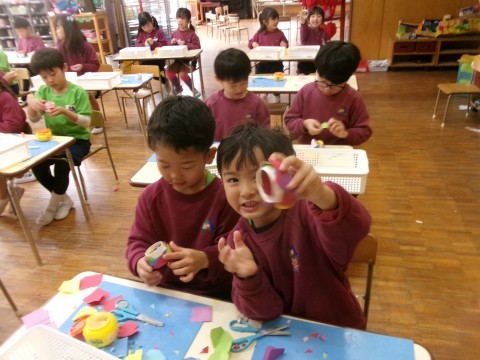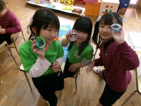 自発活動では、年長さんが作った道具で遊ぶ年少さんの姿がたくさん見られます♪