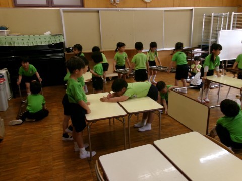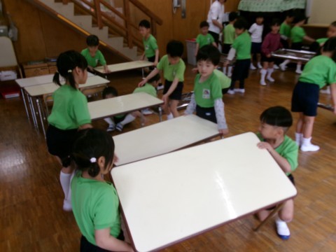 明日・明後日「年中さんに,机の出し方を教えてあげよう!」と
