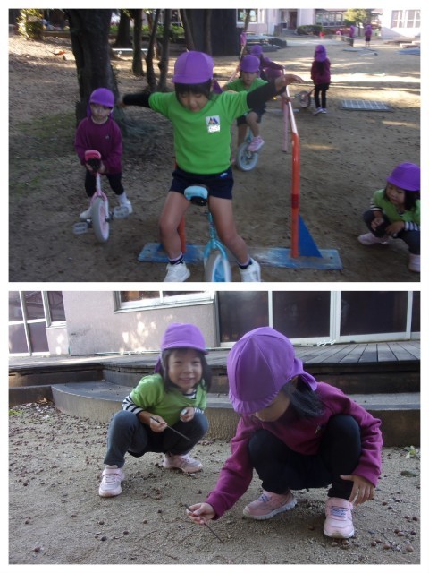 拾ったドングリを大きさに分けている子もいますよ!
