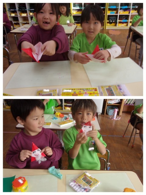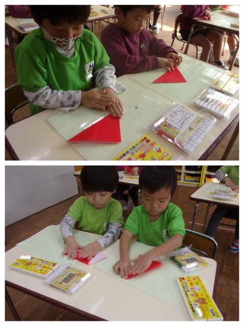角をそろえたり折り線をしっかりとつけたりと集中して丁寧に取り組んでいました。