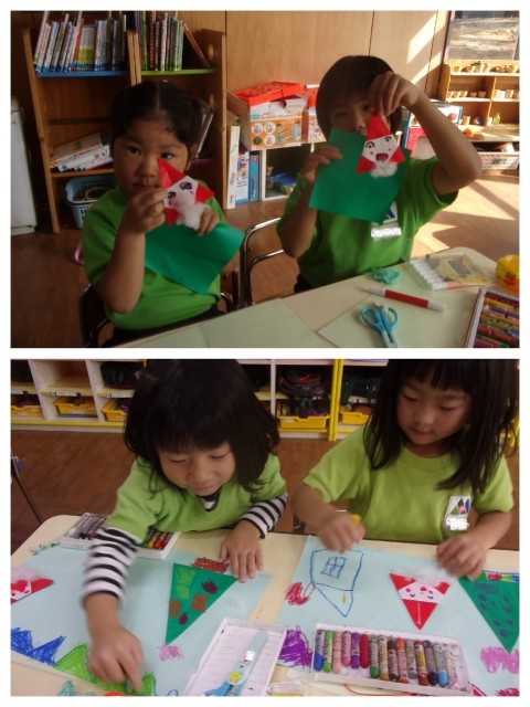 「雪が降ってきた!」「これはね、プレゼント!!」と思い思いに描いていましたよ♪