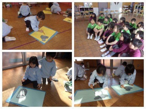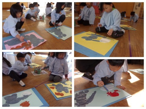 「雪が降ってきた!」「これはね、プレゼント!!」と思い思いに描いていましたよ♪
