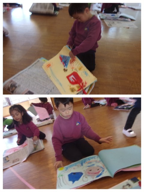 絵を振り返って「この絵描いたよね!懐かしいな」と思い出に浸っていました。