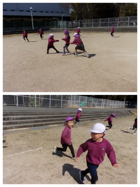 運動場でしっぽとりの鬼ごっこをしました。