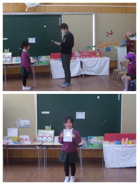 昨日の表彰式に欠席だったお友達の表彰をしましたよ!