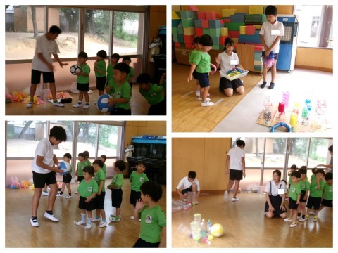 どうすれば幼稚園の子どもたちが楽しんでくれるかな?とたくさん考えて,遊びを用意してきてくれましたよ。
