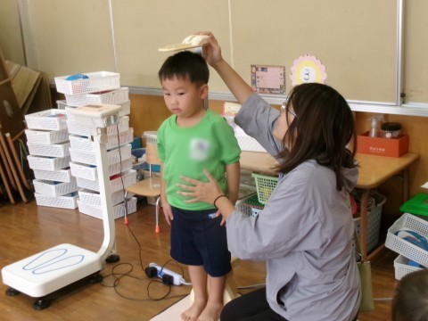 今日は、10月の2測定を行いました。身長や体重を測るときの姿勢も、とても上手になっていました!!2測定後に養護教諭から「和式トイレの使い方・拭き方」のお話と、「手の洗い方」をおさらいしました。実際に座る姿勢や、拭くときの動作を確認しましたよ。「手の洗い方」は、水を出すところからイメージしながらやってみました(⌒∇⌒)前回話したことを覚えている子もいて、「次はこうやるんだよ」と教えてくれる子もいました! -
