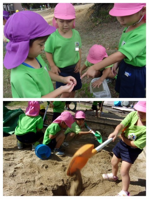 「落とし穴や~」と嬉しそうに掘り進めて、「明日も続きしよう」と声をかけあっていました。