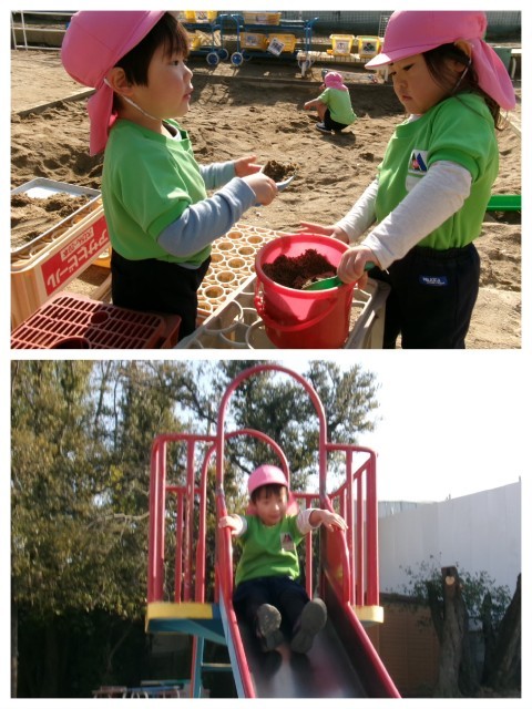 戸外でも駆け足の後もたくさん体を動かして元気いっぱいに遊んでいます。