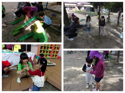 森にたくさん落ちているどんぐりを一緒に拾って遊んだり、