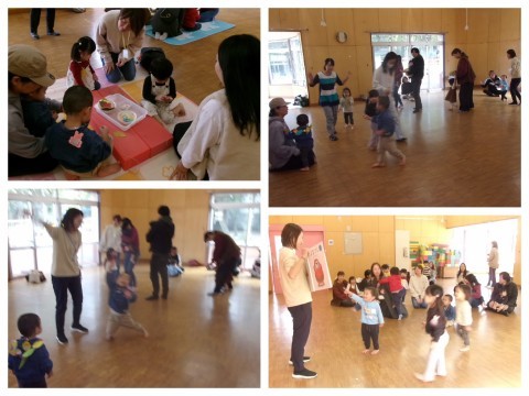 はじめに『どうぶつたいそう1・2・3!』で準備体操をしてから、親子で楽しい遊びをたくさんしましたよ。